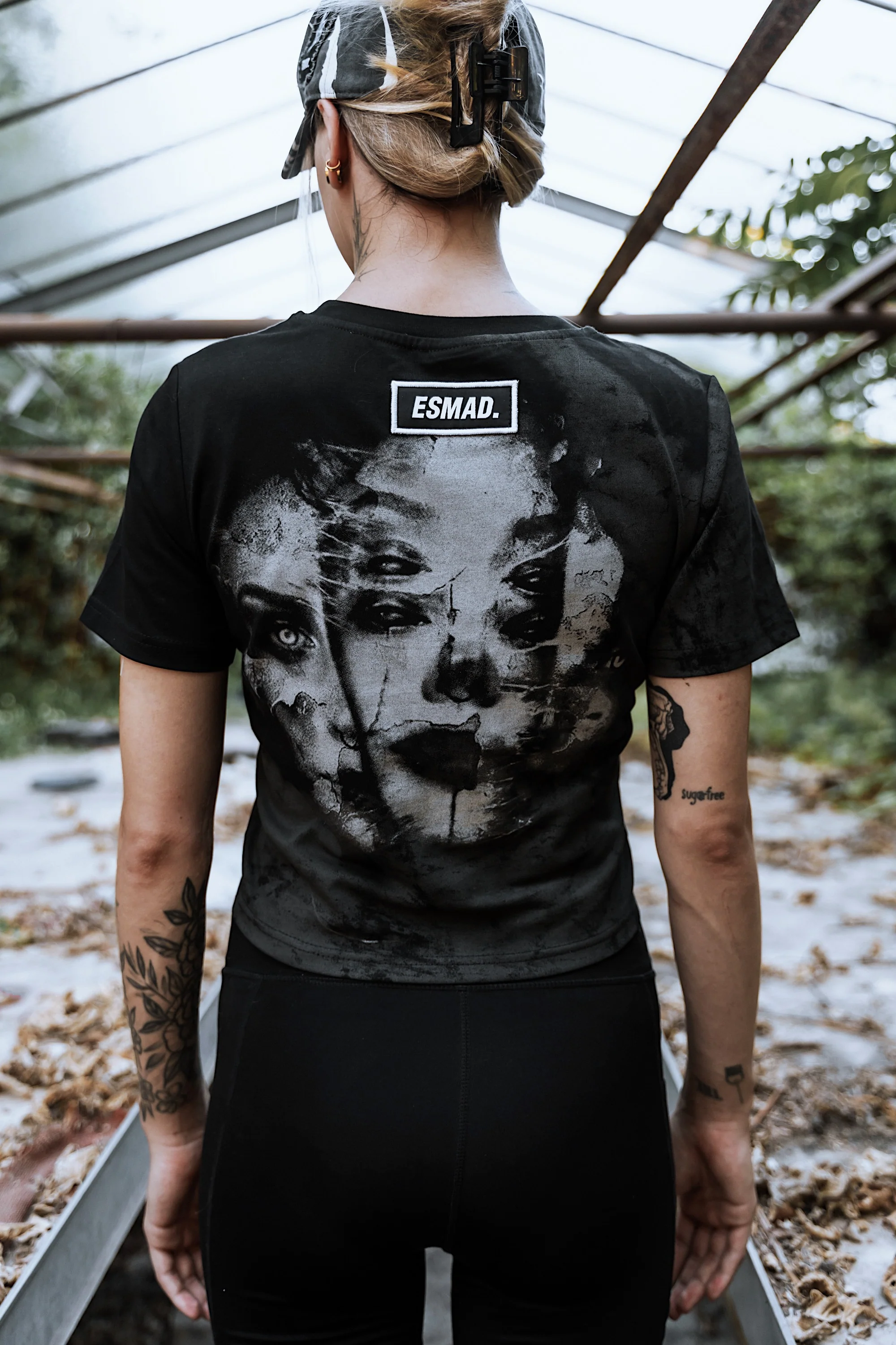 She bleeds chaos. „Trinity“ is not your cute little crop, this is a statement stitched in shadows and soaked in defiance. The front screams lowkey menace with a death metal „Stay Cold“ embroidery. Flip it, and you’re face-to-face with a splitted female portrait-violent, haunting, unapologetically raw - created by the twisted mind of @roberto_diaz_arte_del_caos. Cut from 100% cotton at a light-but-deadly 200GSM, this top feels like second skin. The fit is relaxed, but the attitude is anything but. Clean-edged custom patches and full-front/back screenprints seal the deal.